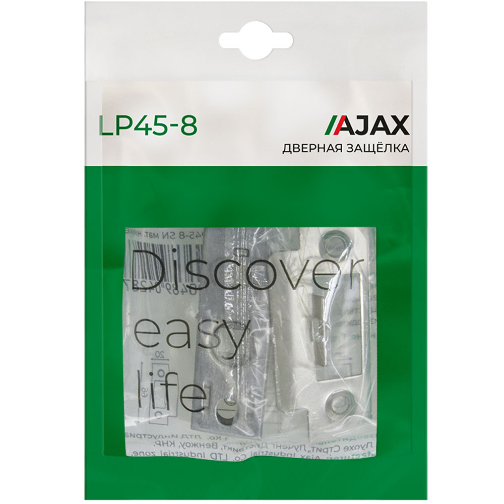 Защелка LP45-8 имеет 2 класс надежности (100 000 циклов открывания/закрывания). Размер бэксета - 45 мм. Цвет: матовый никель. В комплектацию входят: ответная планка и крепежная фурнитура в цвет изделия.