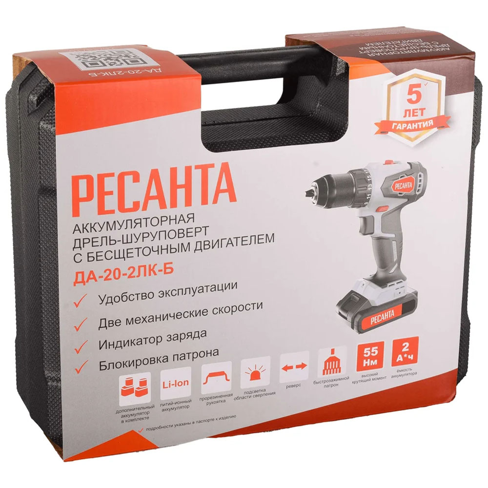 Производительная, надежная, компактная модель Ресанта ДА-20-2ЛК-Б с 2 аккумуляторами, бесщеточным двигателем пригодится в частном хозяйстве, на строительных и других рабочих объектах, где нет возможности подключения к сети.