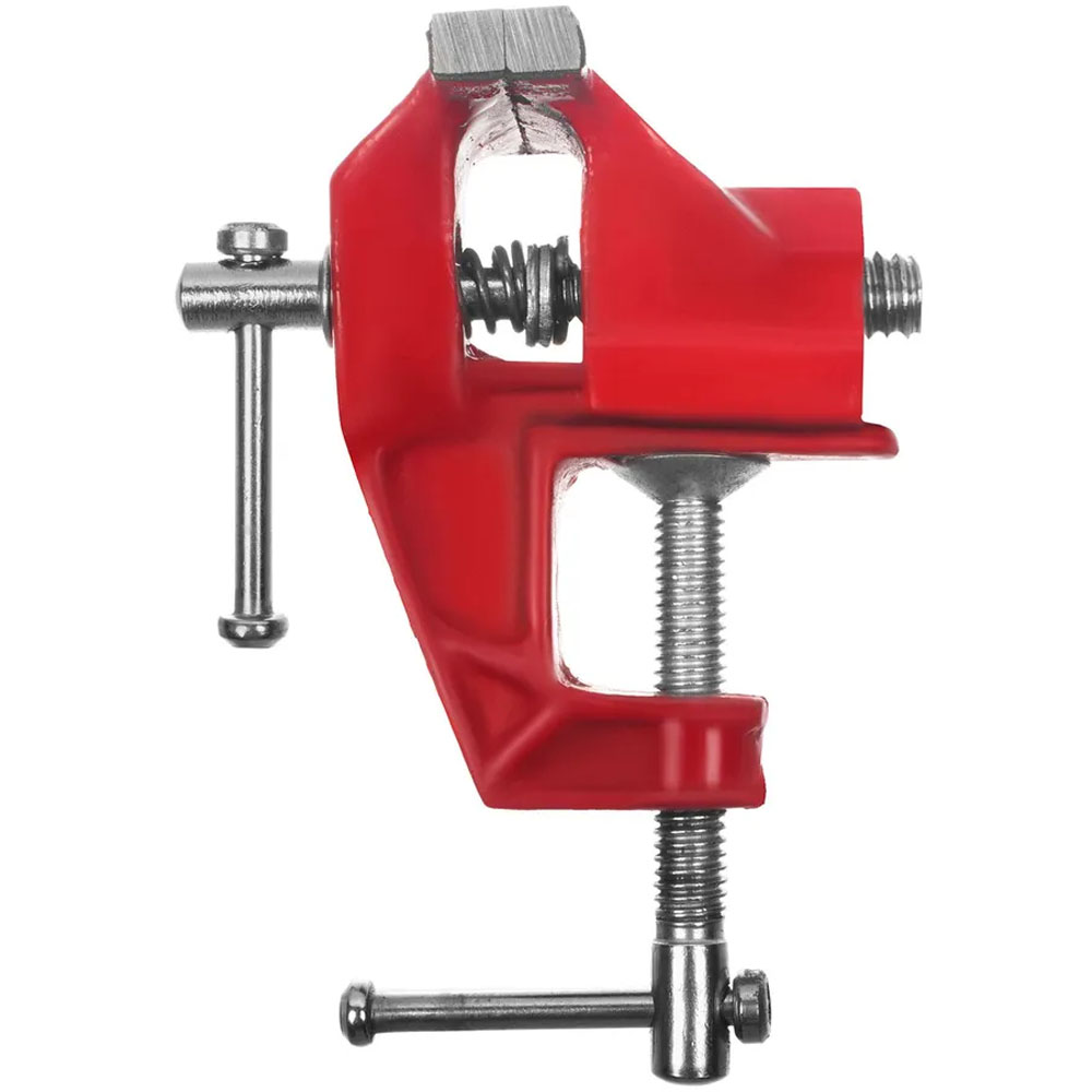 Винтовой зажимной механизм позволяет легко устанавливать и снимать тиски с рабочего стола.