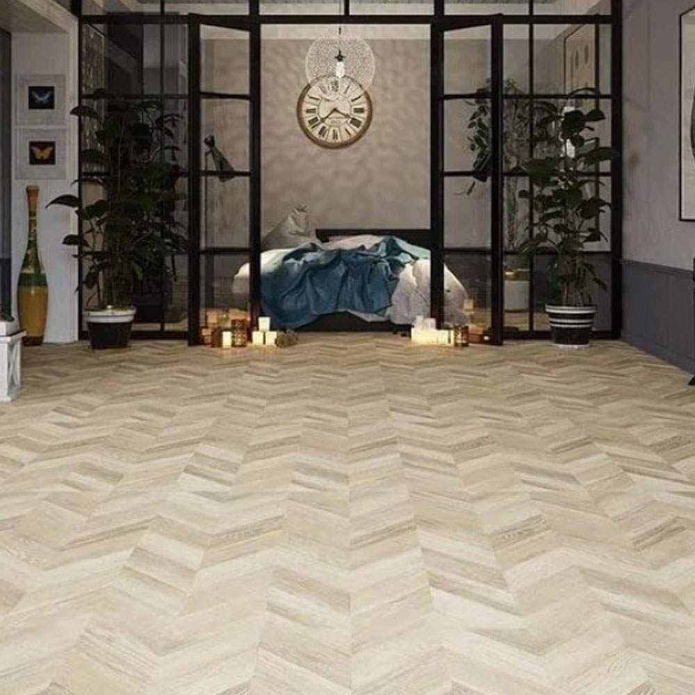 Комплект включает 8 панелей с интересным дизайном, способным реализовать различные интерьерные решения. Елочный рисунок точно передает фактуру волокон древесины дуба и доставляет приятные тактильные ощущения.