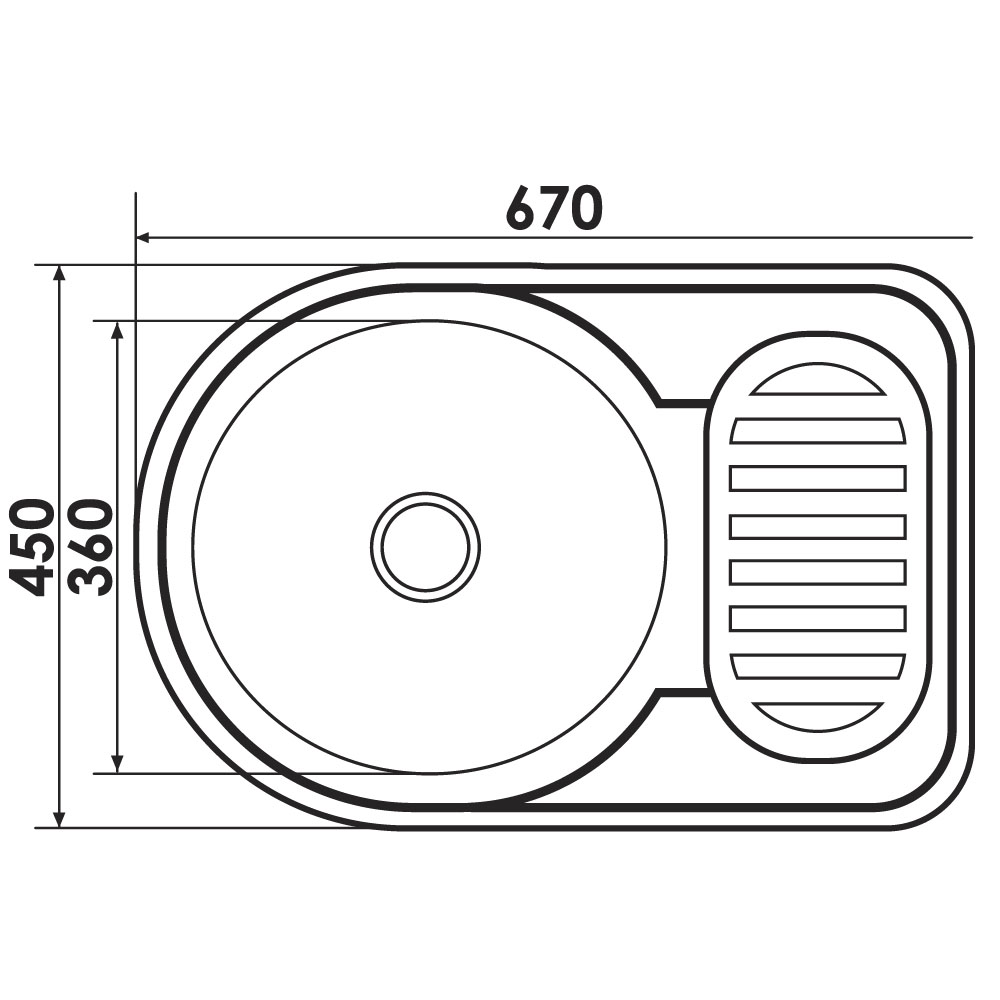 Форма: Мойка с круглой чашей и прямоугольным крылом