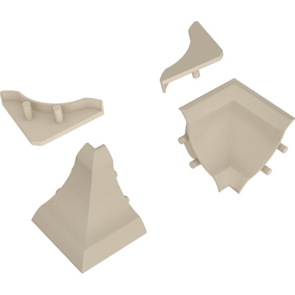 В комплект аксессуаров для плинтуса Korner LB 15 входит: внешний уголок- 1 шт., внутренний уголок- 1 шт., заглушка левая- 1 шт., заглушка правая- 1 шт