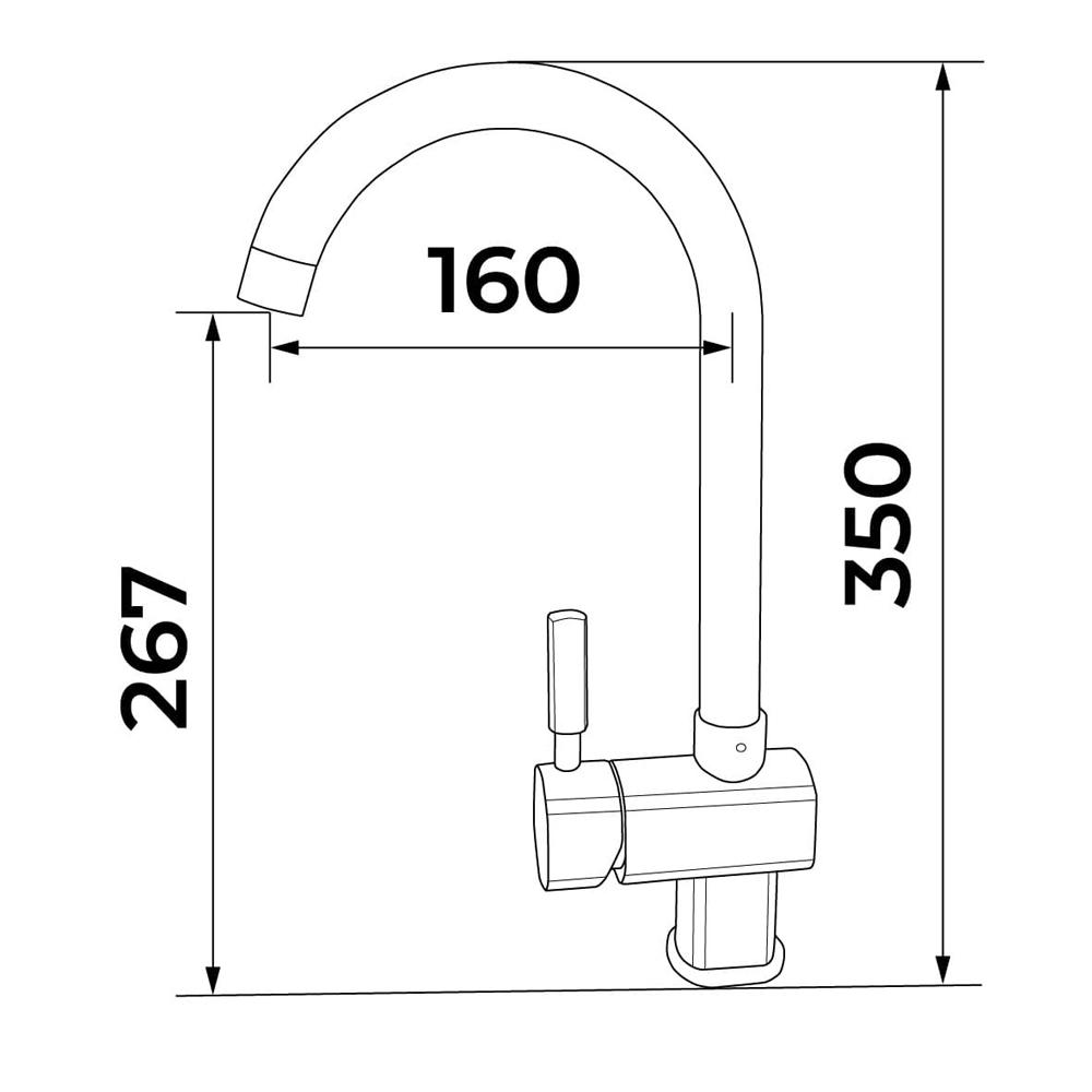 Кухонный смеситель с высоким изливом полукруглой формы с одним рычагом, располагающимся сбоку на корпусе оригинальной формы.