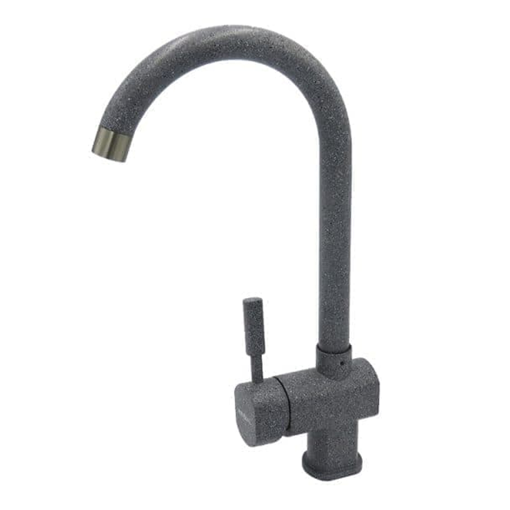 Корпус выполнен из латуни, излив стальной, круглый, поворотный. Сверху композитное покрытие из мраморной крошки.