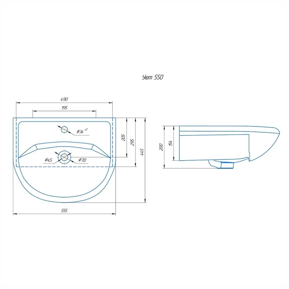 В раковине предусмотрено отверстие под перелив, а также отверстие под смеситель, которое располагается по центру.