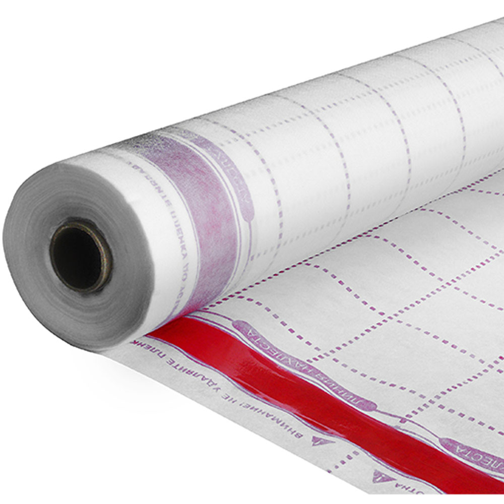 На пленку нанесена МОНТАЖНАЯ клеевая лента для герметичного соединения полотен материала между собой, а также разметка в виде горизонтальных и вертикальных линий для удобства при монтаже полотна.